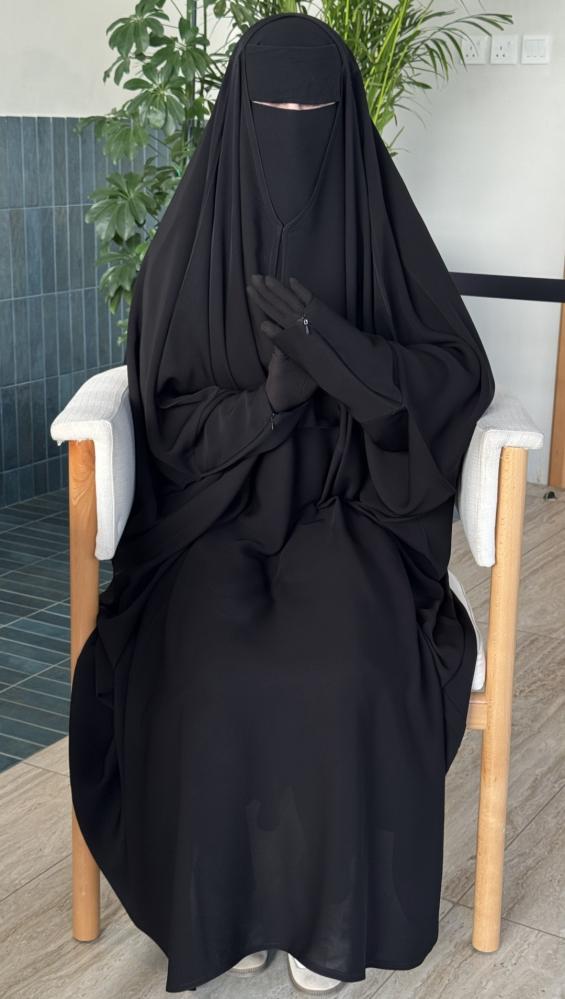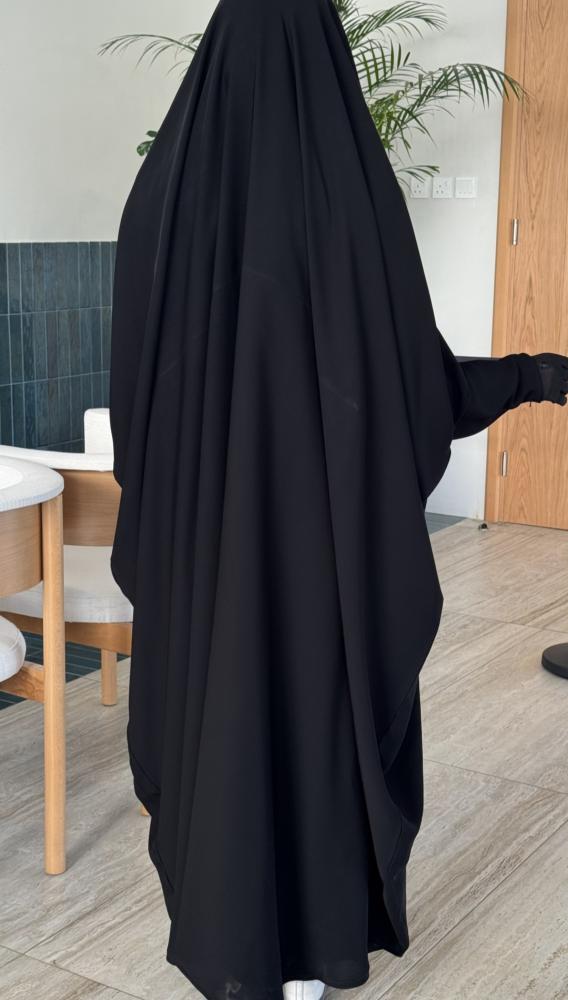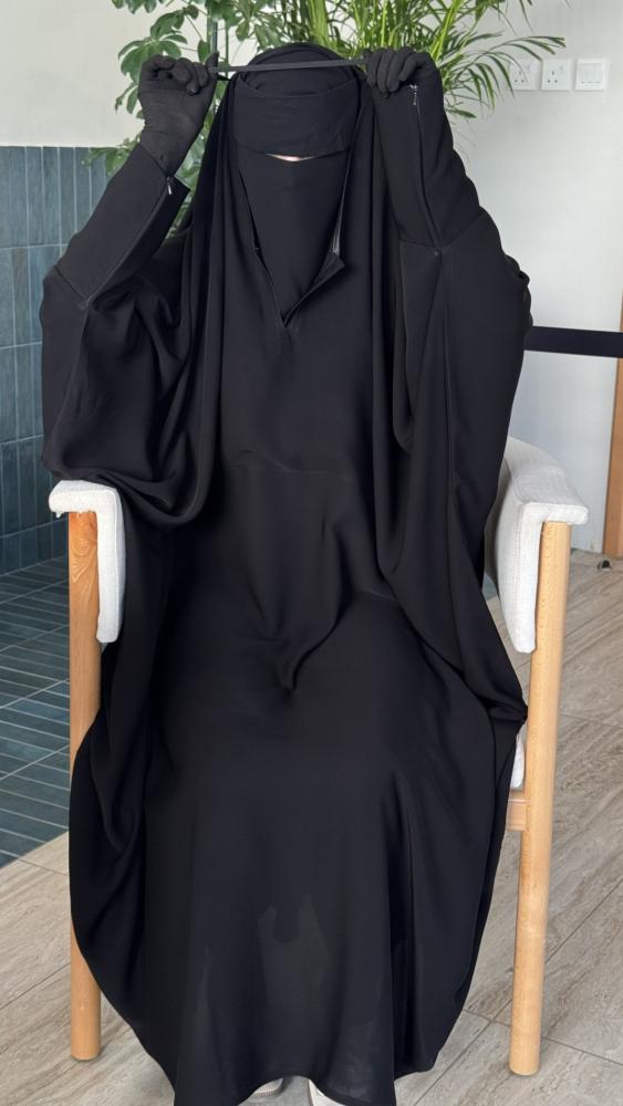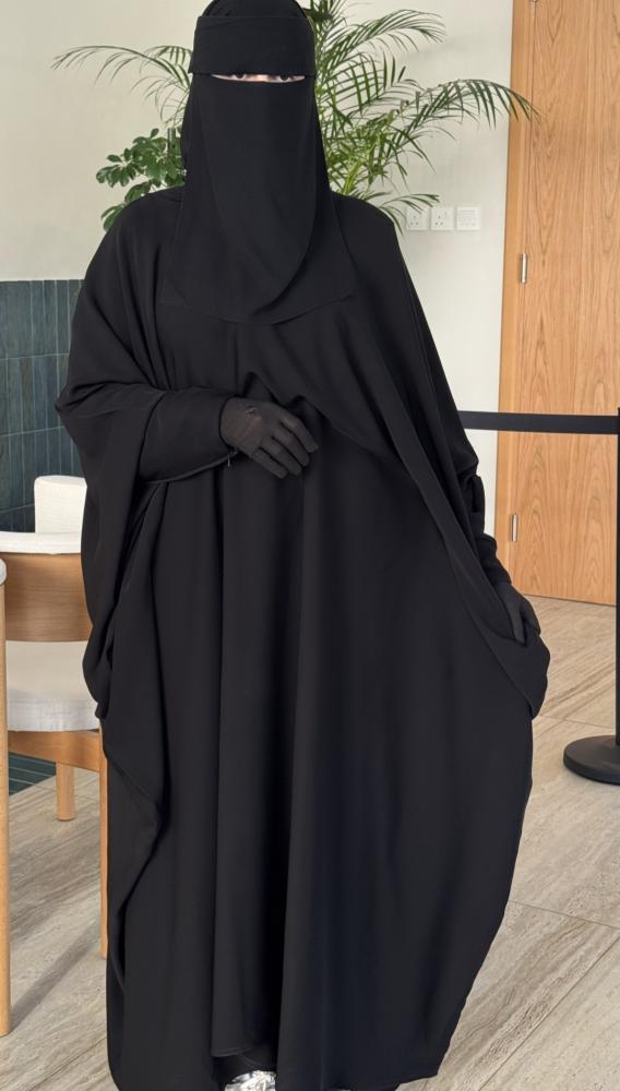 تصميم جديد- عباية تجي كتف وعباية رأس- أكمام سحاب- مطاط من أعلى للتثبيت- قماش سوبر ندى الكوري- قصة بشت